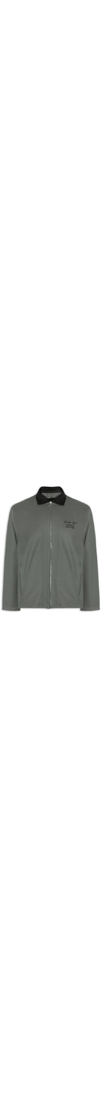 A jaqueta cinza é confeccionada em sarja sem elasticidade. A peça solta ao corpo possui colarinho simples em cor contrastante, mangas longas, bolsos frontais, bordado frontal com escrita e logo da marca em cor contrastante, forro e fechamento frontal por zíper metalizado.