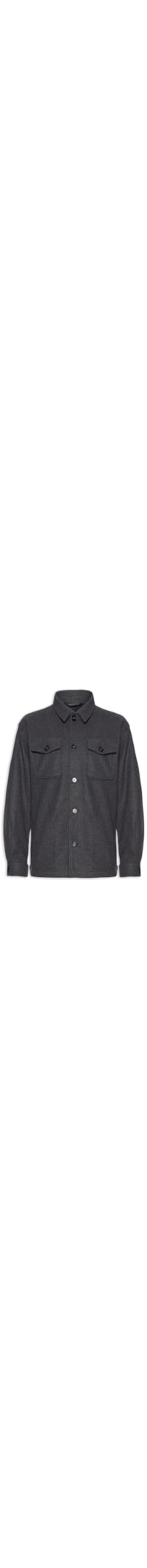 A jaqueta cinza é confeccionada em tecido encorpado sem elasticidade. A peça solta ao corpo possui colarinho clássico, mangas longas, bolsos frontais com aba sobreposta e fechamento por botões, forro e fechamento frontal por botões.