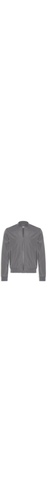 A jaqueta cinza é confeccionada em tactel sem elasticidade. A peça de modelo corte vento solta ao corpo possui gola mandarim, mangas longas com ajuste nos punhos, acabamento canelado na gola, punhos e barra, forro, bolsos frontais embutidos com fechamento por zíper e fechamento frontal por zíper.