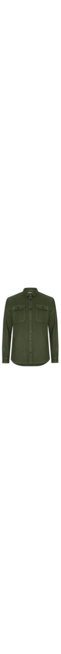 A jaqueta verde é confeccionada tecido encorpado sem elasticidade. A peça solta ao corpo possui colarinho clássico, mangas longas com ajuste nos punhos por botão, bolsos frontais com fechamento por botão, recorte posterior, barra com acabamento arredondado e fechamento por botão frontal.
