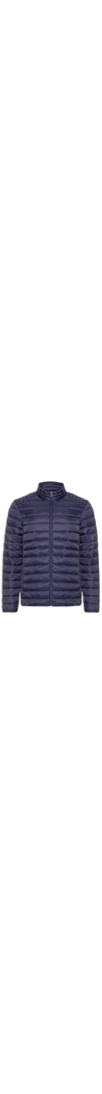 A jaqueta azul é confeccionada em nylon. A peça solta ao corpo modelo puffer* possui gola alta, mangas longas, bolsos frontais embutidos com fechamento por zíper, forro e fechamento frontal por zíper.