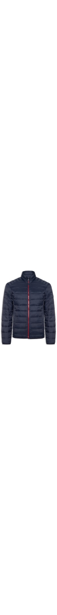 A jaqueta azul é confeccionada em nylon. A peça modelo puffer* solta ao corpo possui gola alta, mangas longas, bolsos frontais embutidos com fechamento por zíper, bolsos internos, recortes frontais e posteriores, forro e fechamento frontal por zíper.