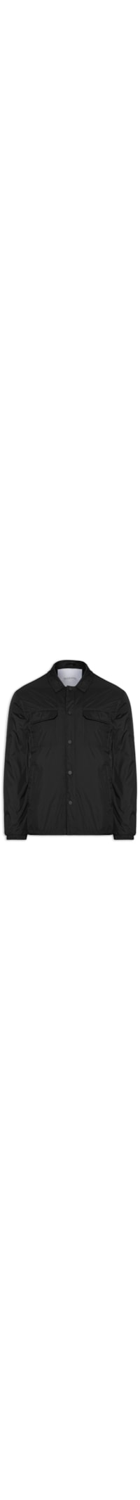 A jaqueta preta é confeccionada em nylon sem elasticidade. A peça solta ao corpo possui colarinho clássico, mangas longas com elástico embutido nos punhos, bolsos frontais com fechamento em botão, bolsos frontais modelo faca, forro modelo puffer*, bolso interno com fechamento em botão, recortes frontais e posteriores e fechamento frontal por botão.