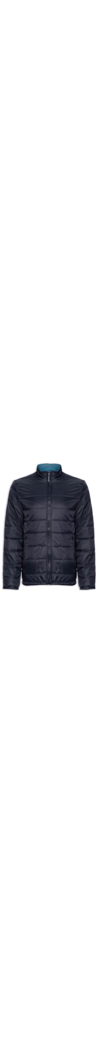 A jaqueta azul é confeccionada em tactel sem elasticidade. A peça de modelo puffer* solta ao corpo de modelo dupla face possui gola alta, mangas longas, superfície em matelassê, dupla face na cor preto, bolsos frontais embutidos com fechamento por zíper e fechamento frontal por zíper.