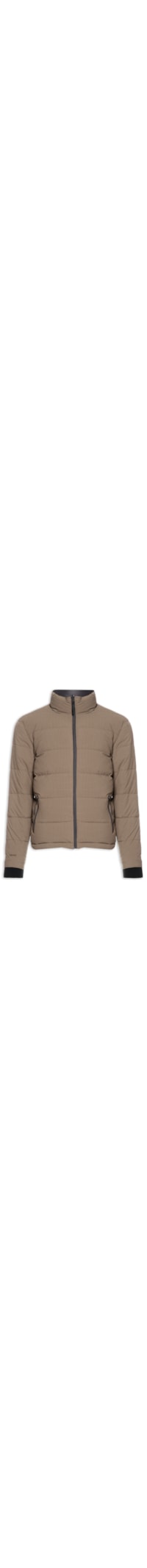 A jaqueta marrom é confeccionada em tactel com superfície texturizada e sem elasticidade. A peça de modelo dupla face solta ao corpo possui gola alta, mangas longas com ajuste nos punhos em tricot na cor preto, bolsos frontais embutidos com fechamento por zíper, superfície em matelassê, dupla face preta em nylon, enchimento e fechamento frontal por zíper.