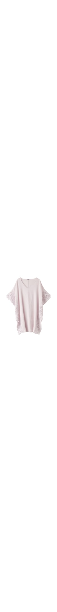 Kaftan em 100% algodão com mangas curtas estilo quimono, enfeitado por uma linda renda macramê com estampa floral.