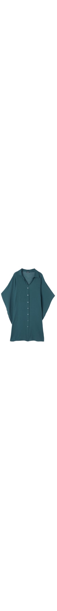 Kaftan estilo camisa em algodão, com abertura frontal em botões. Possui colarinho de camisa e mangas curtas.