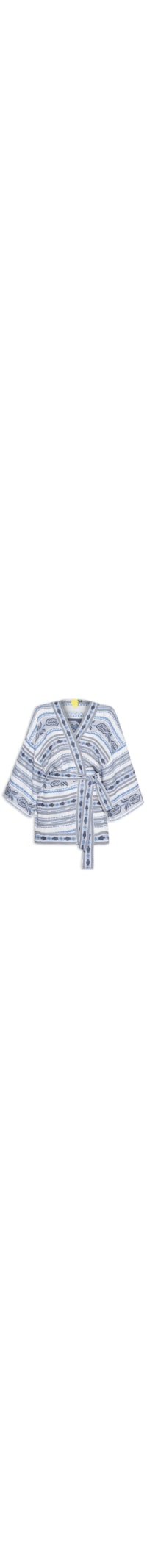 O kimono é a peça perfeita para aqueles dias preguiçosos, mas sem abrir mão do estilo. O uso da terceira peça é curinga e levanta qualquer outfit básico no ato! Combine este de Farm Praia com um top branco, saia estampada, sandálias de tiras, brincos grandes e bolsa de palha.