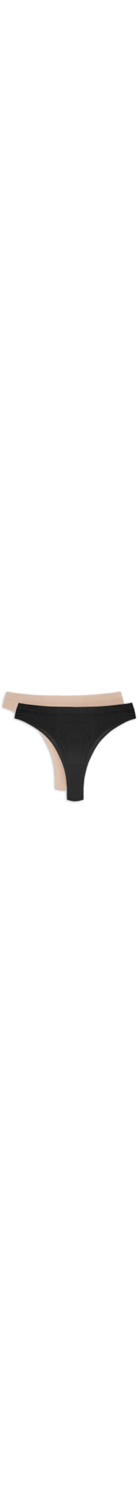 O kit de calcinhas contém 2 peças nas cores preto e bege confeccionadas em tecido leve com alta elasticidade. As peças de modelo tanga possuem cintura alta e cós elástico.