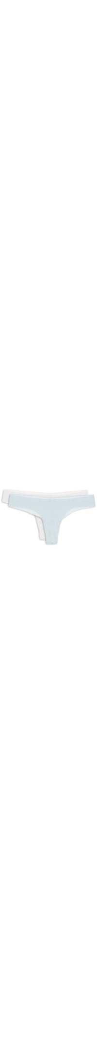 O kit de calcinhas contém duas peças nas cores verde e branco confeccionadas em malha leve de alta elasticidade. A peça de modelo fio dental, possui cintura baixa, laterais largas, acabamento por corte a fio e forro.