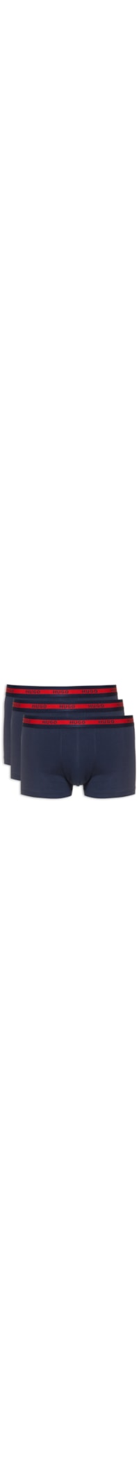 O kit de cuecas contém 3 peças na cor azul confeccionadas em malha. As peças de modelo trunk possuem cintura média, cós elástico com nome da marca em cor contrastante e recortes frontais anatômicos.