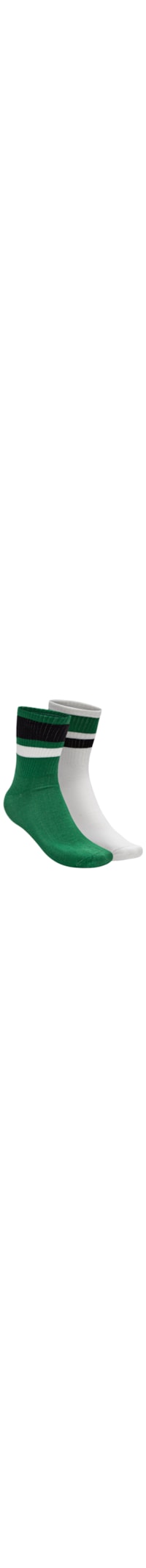 O kit de meias contém dois pares nas cores verde e branco sendo confeccionados em malha de média elasticidade. As peças possuem cano médio, detalhe de listras em cores contrastantes no cano, nome da marca aplicado na parte inferior em silk e acabamento canelado.