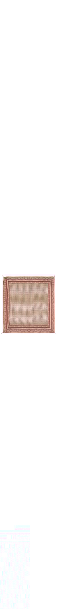 O lenço bege é confeccionado em tecido leve sem elasticidade. A peça possui formato quadrado, extremidades com ponteiras removíveis em miçangas, transparência e mix de estampas em cores contrastantes.