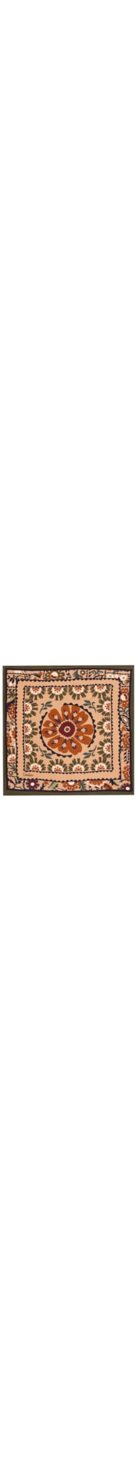 O lenço marrom é confeccionado em tecido leve. A peça possui tamanho médio, formato quadrado, bordas com listras em cores contrastantes e mix de estampas em cores contrastantes.