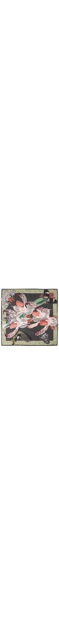 O lenço verde é confeccionado em tecido leve sem elasticidade. A peça possui tamanho grande, formato retangular e mix de estampas em cores contrastantes.