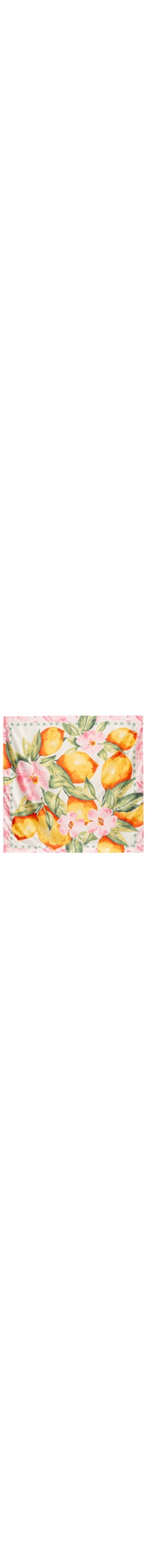 O lenço laranja é confeccionado em tecido leve com superfície acetinada e sem elasticidade. A peça possui tamanho grande, formato quadrado, mix de estampas em cores contrastantes e tag da marca aplicada na parte interna.