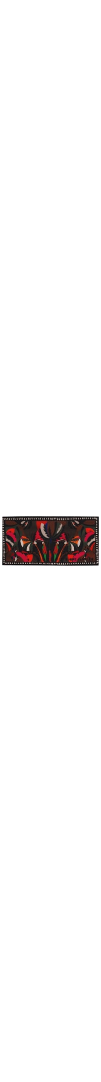 O lenço preto é confeccionado em seda. A peça possui formato retangular e mix de estampas em cores contrastantes.