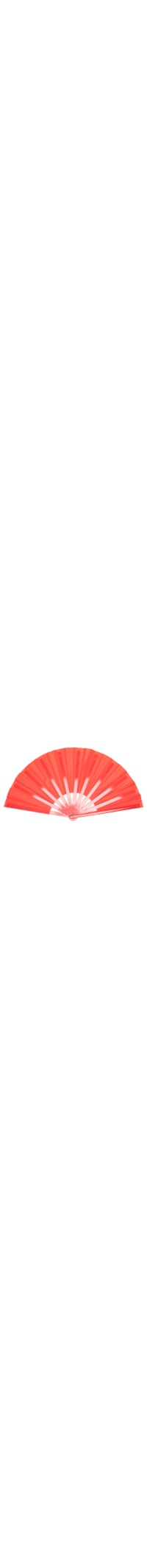 O leque vermelho é produzido em plástico. A peça possui tamanho grande e parte superior em material têxtil.