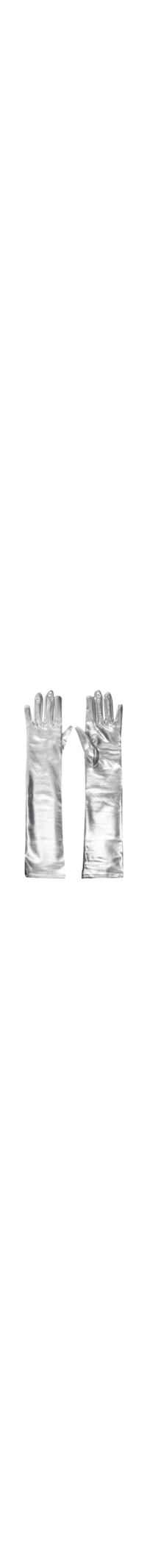 A luva prata é produzida em malha com superfície metalizada e alta elasticidade. A peça justa ao corpo possui tamanho médio, comprimento alongado e sem fechamento.