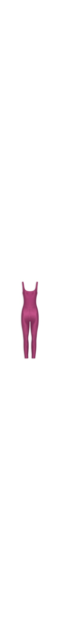 O macacão rosa é confeccionado em malha de poliamida com efeito metalizado e média elasticidade. A peça justa ao corpo possui decote em U, alças finas, cavas regulares, decote posterior em U, tag metalizada da marca aplicada na parte posterior, forro, bojo removível e comprimento longo.