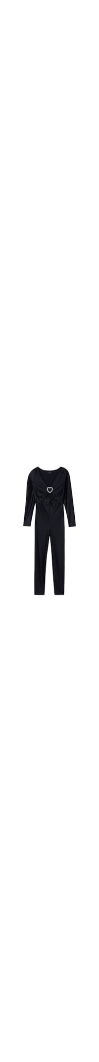 Macacão skinny de manga comprida em tecido superbrilhante, com um amplo decote em V e um berloque brilhante removível em forma de coração.
