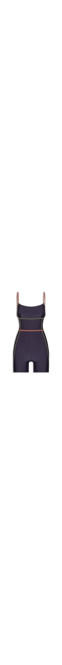 O macaquinho azul marinho é confeccionado em malha de poliamida com alta elasticidade. A peça justa ao corpo possui decote reto, alças finas com elástico embutido, recortes frontais e posteriores, bojo embutido, acabamento em frontal e posterior viés de cores contratantes e comprimento curto.