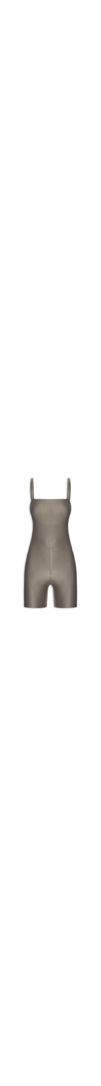 O macaquinho cinza é confeccionado em malha de poliamida com média elasticidade. A peça justa ao corpo possui decote reto, alças finas, recortes frontais e posteriores, bojo embutido, abertura posterior, nome da marca aplicado na parte posterior e comprimento curto.
