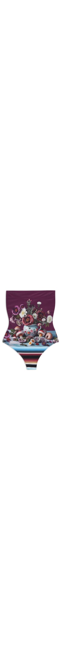 O maiô roxo é confeccionado em malha de média elasticidade. A peça de modelo tomara que caia possui decote reto, mix de estampas em cores contrastantes e forro.