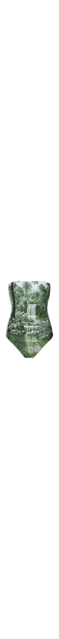 O maiô verde é confeccionado em malha de poliamida com alta elasticidade. A peça justa ao corpo de modelo tomara que caia possui decote reto e mix de estampas em cor contrastante.