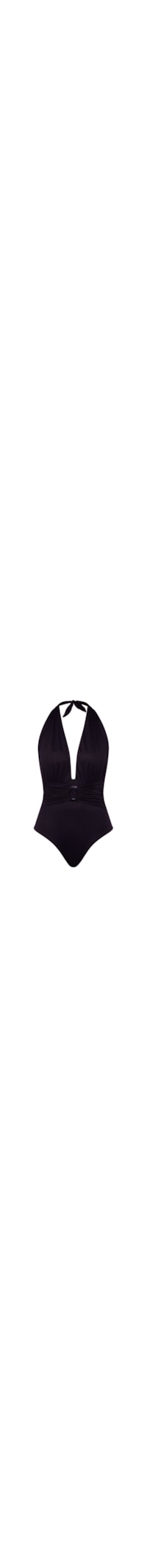 Esse maiô é uma peça elegante. com decote profundo, costas nuas, e detalhe de franzido frontal com acabamento em uma argola com detalhe de cores mesclado. Feito em tecido biodegradável, com acabamento todo embutido, a peça proporciona um toque mais confortável ao corpo. Veste bem qualquer biotipo. No tom preto, um básico atemporal.
