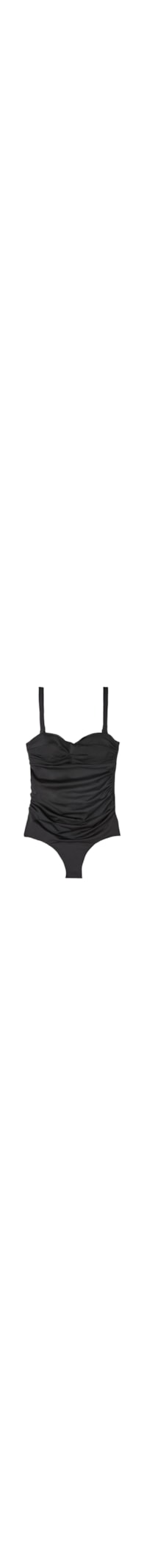 Maiô com um leve bojo e aro, perfeito para seios maiores. Detalhe franzido no centro do seio para criar movimento no decote. Costas com decote arredondado. Alças reguláveis e removíveis. Fecho com gancho e dupla regulação. Franzido nas ancas para modelar a silhueta. Corte estilo cueca atrás.