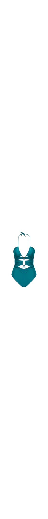 Modelagem de efeito recortado. Possui uma tira elástica que une o top e a calcinha na parte da frente, formando um maiô bem decotado. Equilíbrio perfeito entre curvas e sofisticação. Possibilidade de amarração no pescoço e fecho nas costas. Experimente usá-lo também como body.