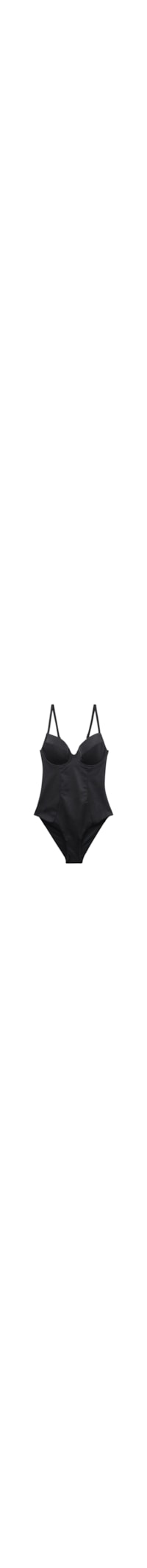 Maiô com design sofisticado, copas levemente almofadadas e aro para garantir sustentação ideal. Confeccionado em tecido brilhante, destaca-se pelo elegante efeito bustiê nas costas, adornado com um sensual cruzamento de tiras. Com um charme chique e elegante, é uma peça versátil que também pode ser usada como body para compor um look noturno refinado.