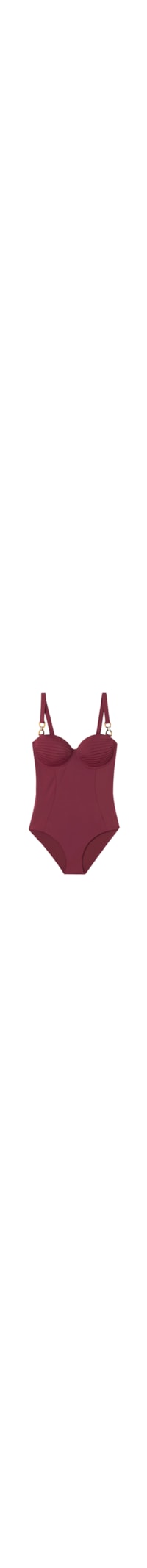 Selecione o tamanhoMaiô com copas ligeiramente almofadadas e aro. Apresenta tecido plissado nas copas e um acessório na base das alças. O efeito adelgaçante no abdômen é proporcionado por um tecido de tule especial na parte da frente. Alças reguláveis e removíveis na parte de trás. Corte estilo calcinha na parte de trás.