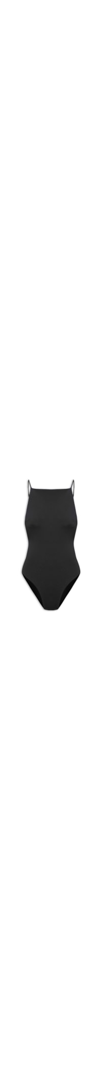 O maiô preto é confeccionado em malha com alta elasticidade. A peça possui decote trapézio, alças finas, cavas estendidas, falar do recorte figurativo de folha na parte posterior, forro e sobreposição