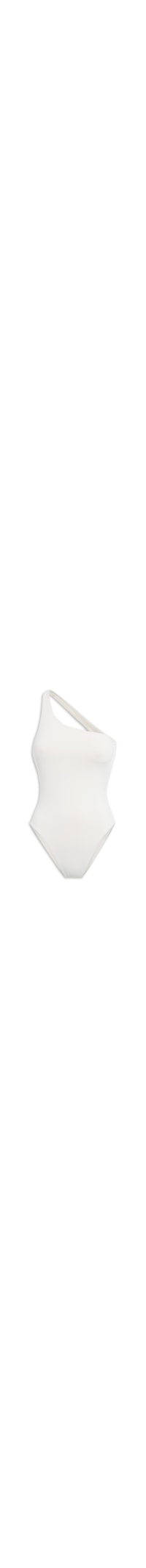 O maiô off white é confeccionado em malha de poliamida. A peça possui ombro único, shape justo, forro embutido, recorte vazado posterior e acabamento elástico.