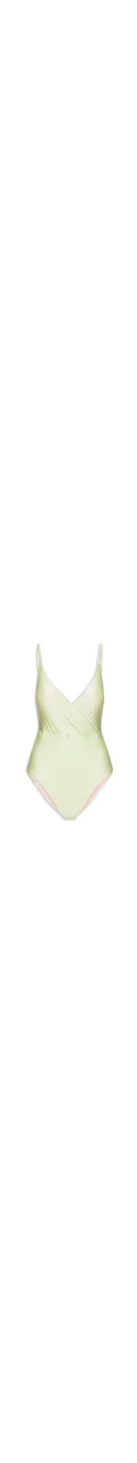 o maiô Verde é Confeccionado Em malha Cirrê De Alta Elasticidade. A Peça Possui Decote Em V Com Transpasse Frontal, Alças Finas Estendidas Para Amarração Posterior, Cavas Estendidas, Bojo Removível Leve Franzido Frontal E Forro.