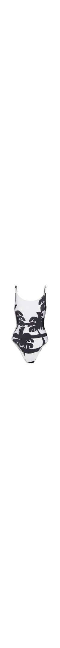 O maiô preto é confeccionado em malha com alta elasticidade. A peça possui decote reto, alças finas, cavas estendidas, recorte posterior vazado com cordões alongados para amarração, forro, mix de estampas na cor off white.