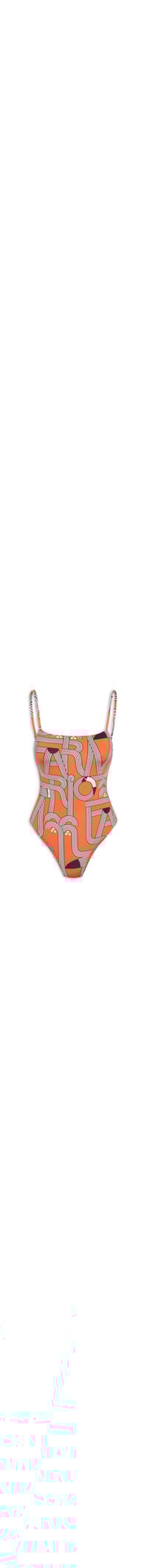 O maiô vermelho é confeccionado em malha com alta elasticidade. A peça de modelo dupla face possui decote U, alças finas, tiras finas alongadas na parte posterior para amarração, forro, estampa abstrata em cores contrastantes, dupla face com estampa geométrica em cores contrastantes e sem bojo.