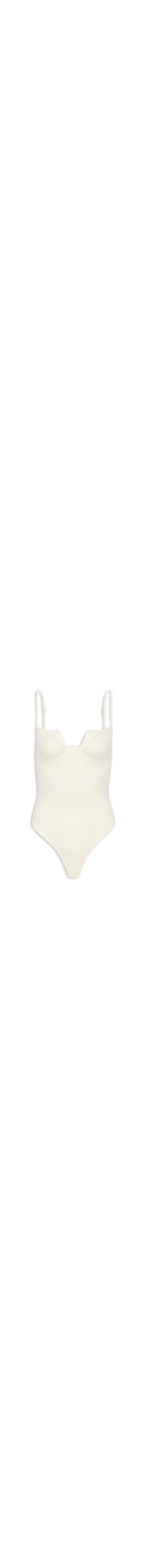 O maiô branco é confeccionado em malha texturizada com alta elasticidade. A peça justa ao corpo possui decote coração com detalhe ondulado, alças finas reguláveis, aro embutido no busto, recortes no busto, bojo, decote posterior reto e forro.