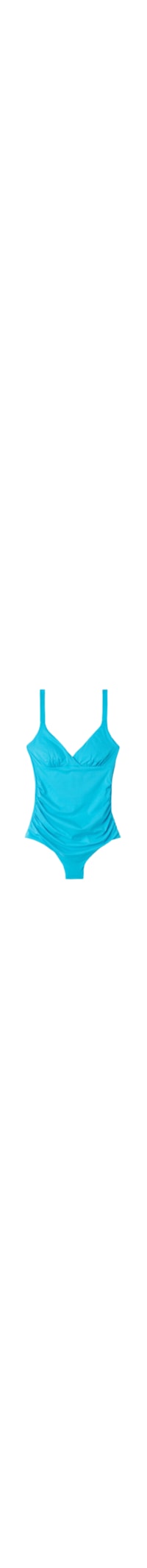 Maiô com decote cruzado e copas com bojo leve e sem aro. Alças ajustáveis. Franzido nos quadris para dar forma à silhueta. Efeito modelador na região abdominal. Feito de tecido macio e confortável, de secagem rápida. Totalmente forrado. Possui corte estilo "cueca" na parte de trás.