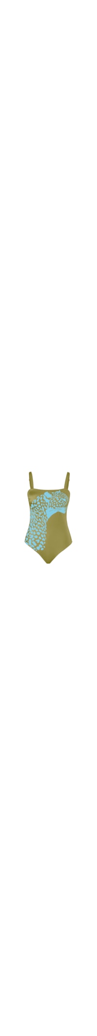 maiô confeccionado em tecido verde pistache com leve e discreto brilho, proteção solar UV50+ e aplicação de estampa linda e exclusiva de um dos animais mais emblemáticos na nossa fauna brasileira: a onça pintada. possui decote reto, bojo e alça removível. uma peça incrivelmente especial que pode ser usada como maiô ou body.