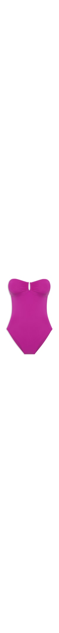 O maiô rosa é confeccionado em malha com alta elasticidade. A peça de modelo tomara que caia justa ao corpo possui decote coração, faixas posteriores médias para amarração, sem bojo, aplicação metálica embutida na altura do busto, recorte na altura do busto e forro.