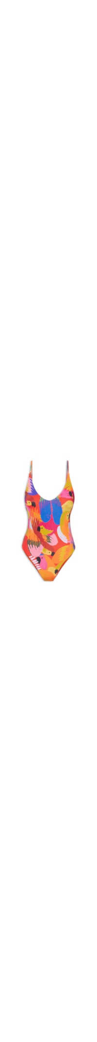 O maiô laranja é confeccionado em malha de poliamida com média elasticidade. A peça possui decote U, alças finas reguláveis, cavas estendidas, mix de estampas em cores contrastantes, forro, sem bojo e acabamento elástico.