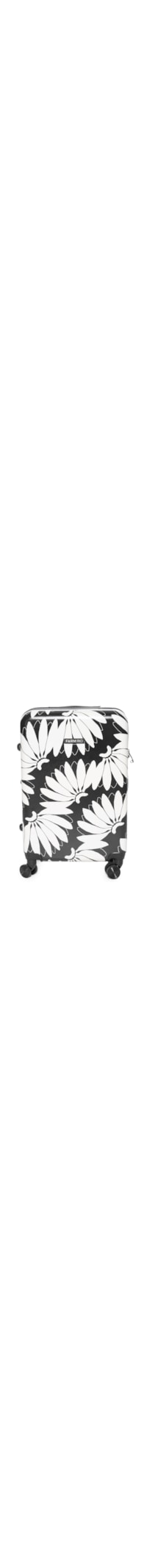 A mala preta é produzida em plástico ABS. A peça de tamanho médio, possui formato retangular, quatro rodinhas giratórias multidirecionais, alça retrátil superior ajustável, alça fixa lateral e superior, tag da marca emborrachada aplicada na parte frontal, compartimento principal amplo, forro em tecido preto, cintas elásticas cruzadas com nome da marca em relevo, bolso frontal, 2 bolsos internos amplos com fechamento por zíper, sendo 1 bolso em mesh com transparência, recorte frontal com nome da marca na cor branca, estampa floral em cores contrastantes, 4 apoios laterais em plástico, e fechamento em zíper com trava TSA acoplada.