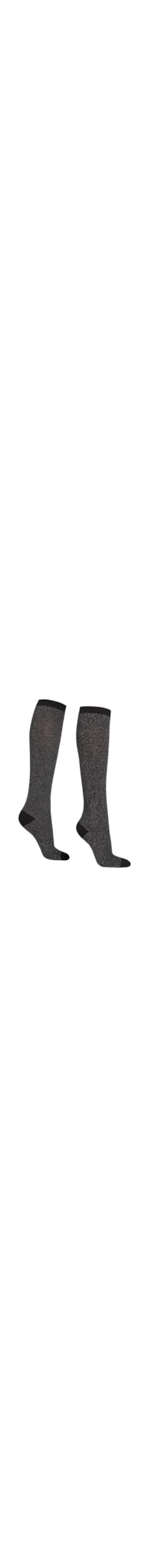 Meia alta feminina, confeccionada em cashmere quente e confortável, apresentando um padrão bicolor e um fio brilhante para um efeito glitter delicado.