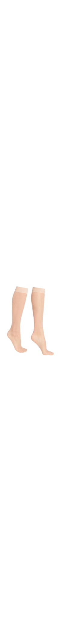 Meia até o joelho de fio 20 den feminina, com punho confortável e ponta adequada para uso com sandálias.