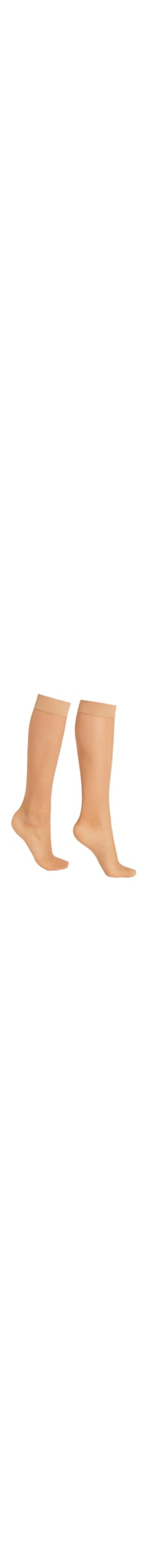 Meia até o joelho de fio 20 den feminina, com punho confortável e ponta adequada para uso com sandálias.