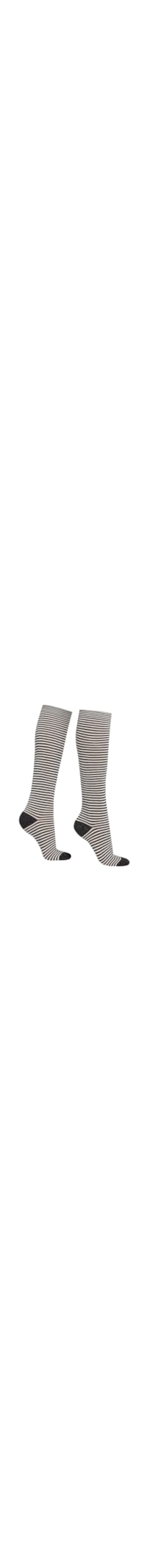 Meia alta feminina, confeccionada em cashmere quente e confortável, apresentando um padrão de listras e um fio brilhante para um sutil efeito de brilho.