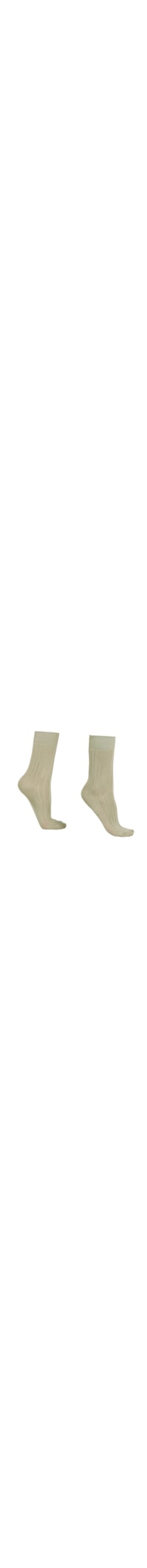 Meia curta para mulher, caracterizada por uma elegante malha canelada alternada com acabamento perfurado em listras verticais.